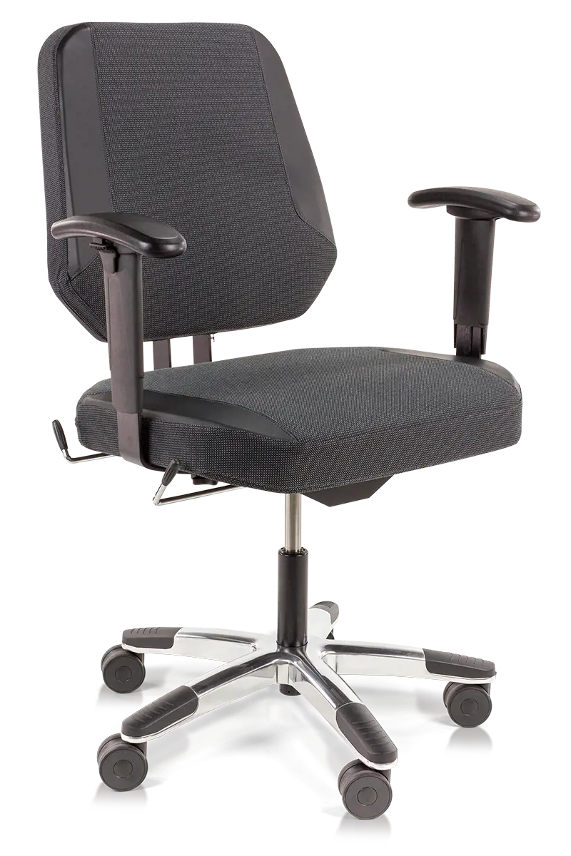 Score, niederländischer Spezialist für Stühle abseits der Norm, produziert mit dem Maxx L schon einige Jahre einen der absolut robustesten und am höchsten belastbaren Bürostühle am europäischen Markt. Garantiert bis zu 250 kg Körpergewicht und mit einer Sitzgröße von 65 cm (Breite) bzw. 53 cm (Tiefe) entsprechend groß dimensioniert. Die Rückenlehne ist 56 cm breit und 50 cm hoch. Die Score-eigene Verstellmechanik aus massiven Stahlteilen ermöglicht eine Verstellung der Rückenlehne in Höhe und Tiefe. Die Sitzhöhe ist von 47 - 61 cm oder alternativ von 50 - 68 cm verstellbar mittels Schwerlast-Gaslift. Standardmäßig ausgestattet mit höhenverstellbaren Armlehnen mit weicher PU-Armauflage für angenehmes Anlehnen.